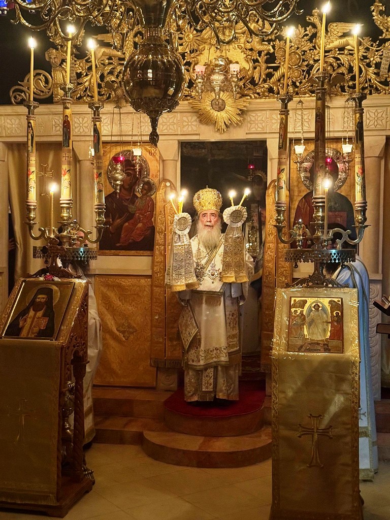 بهذه المناسبة ترأس غبطة البطريرك كيريوس كيريوس ثيوفيلوس الثالث خدمة صلاة السهرانية في الليل والقداس ألالهي في دير الخوزيفا يشاركه ممثل البطريركية الرومانية قدس الأرشمندريت يوحنا, آباء من أخوية القبر المقدس, المتوحد الأب خريسوغونوس من دير الخوزيفا, المتقدم في الشمامسة الأب ماركوس, والشماس المتوحد الأب بروذروموس.