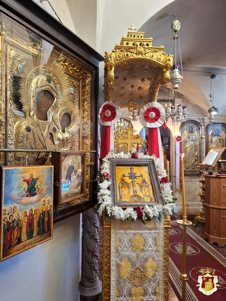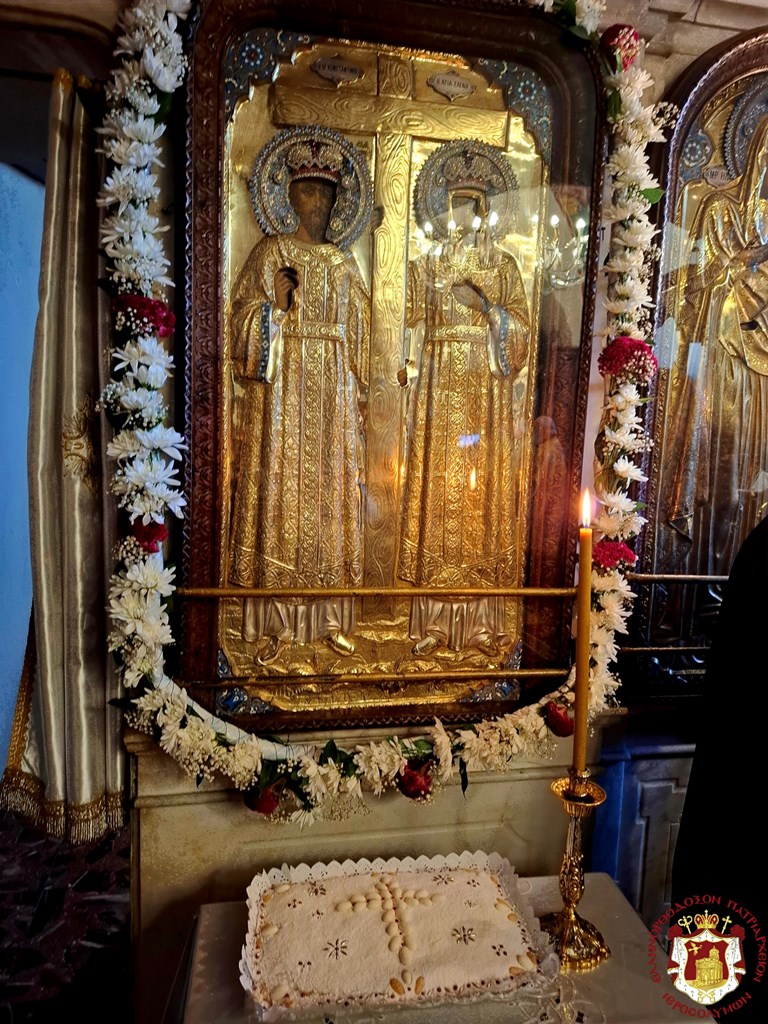 ترأس خدمة القداس الالهي صاحب الغبطة كيريوس كيريوس ثيوفيلوس الثالث في كنيسى القديسين قسطنطين وهيلانة في البطريركية يشاركة قدس الأرشمندريت اليكسيوس مسؤول التيبيكون, آباء أخوية القبر المقدس, بحضور أساقفة وآباء أخوية القبر المقدس من آباء متوحدين ورهبان, القنصل اليوناني العام السيد إيفانجيلوس ذيميتريوس أنجيلوسوبولوس, وعدد من المصلين. بعد القداس الإلهي توجه غبطة البطريرك مع الآباء الى دار البطريركية للمعايدة, مرتيلن قنداق العيد “اليوم قسطنطين مع هيلانة أمهِ. يظهران لنا الصليب، العود الكلي الوقار، الذي هو خزيٌ لجميع اليهود، وسلاحٌ للملوك المؤمنين على الأعداء، لأنهُ قد ظهر لأجلنا، آيةً عظيمة ورهيباً في الحروب”.